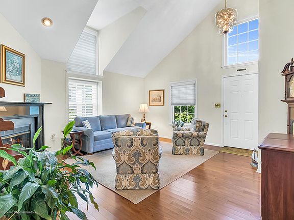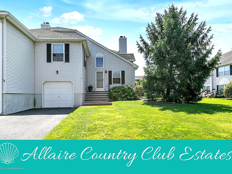 Enjoy Jersey Shore living in Allaire Country Club Estates. Classic Castlebury model, End Unit with 2BR, 2.5BA and 1,508 sq ft of sun-filled rooms and a private patio off the kitchen for entertaining. Upscale kitchen features granite countertops, tiled backsplash and pantry with pull-out shelving. Glistening H/W oak, wide plank flooring throughout first floor. Living Room with sunlight flowing thru elongated windows, cathedral ceiling and wood burning fireplace. Master Bedroom boasts full ensuite bath. Finished basement with recessed lighting and separate laundry room. Attached 1-car garage. Brand New HVAC system (8/20). 1 hour to NYC. Minutes to beautiful beaches, waterfront dining & golf courses.