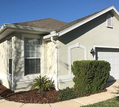 Amazing location: quiet gated community with a pool, the backyard and porch of the house faces a pond with a fountains. Light and bright, spacious house with 2 bedrooms, office behind the glass French doors, huge living area, comfortable kitchen. 2 full bathrooms with a double vanity and spacious walk in shower in master, sliding doors to the screened covered porch. Tiled kitchen and bathroom areas, 2 car garage, vaulted ceiling, fresh paint inside, power washed outside, lawn care provided by HOA, sprinkler system. Garage and porch floors are freshly painted. This house is amazing opportunity for the new family or retired couple, who'd like to live in a safe and quiet environment! Close to shopping centers, town center, 15 minutes to the beach. Walking distance to the community pool. Don't miss this property, it won't stay on the market for a long time!