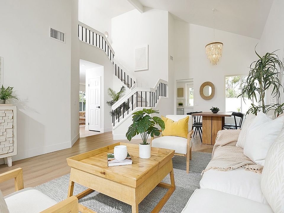 Welcome to one of the most luxurious homes in Rancho Santa Margarita! This is a true entertainer's dream with two living rooms, a large dining room, a beautifully designed kitchen, and a spacious backyard. No expense was spared on the transformation of this 4 bedroom, 2 1/2 bathroom charmer. This home is pristine and the many designer touches are highlighted by all the natural light coming in through the double pane windows. Whether you have a growing family or love to entertain, this home is perfect! The wide plank flooring throughout the home is not only beautiful but it is easily maintained. The chef's kitchen has been completely redone with new shaker cabinets, beautiful quartz countertops, a stunning tile backsplash, a single-basin stainless sink, and stainless steel appliances. The living room features a custom plaster fireplace to cozy up to. The bathrooms feature new vanities, fixtures, and designer WOW tile in the custom shower. The backyard is the perfect spot to entertain with its built-in fireplace, brand new sod, and automatic irrigation. Home has been repiped. All of this AND paid off solar with a 3-year-old roof! Show your most discerning buyers, they are sure to fall in love with this home.