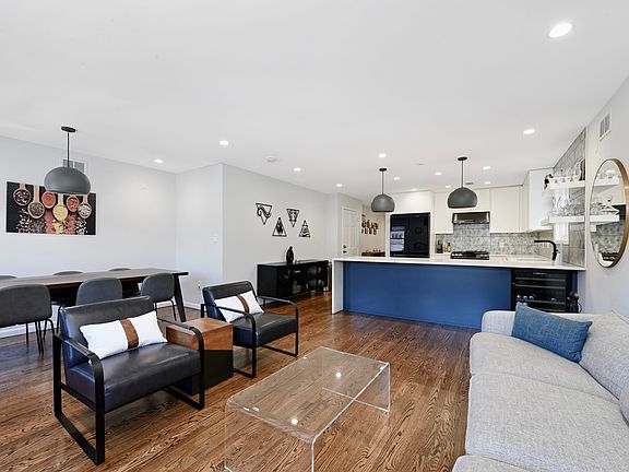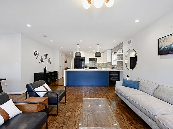 Spacious 4 Bedroom, 3 Bath duplex with private garage (2+ car parking) and backyard just up the road from Hoboken! This expansive 2,300 sq ft home was thoughtfully designed in 2021, offering upscale finishes, luxury smart home features, and flexible living. Step into the open-concept living and dining area, where rich hardwood floors and a built-in window seat set a warm yet modern tone. The sleek chef's kitchen features white cabinetry, quartz waterfall countertops, a bold oversized accent island with space to seat 4-6, chic pendant lighting, custom tile backsplash, range hood that vents to the exterior, and Samsung smart appliances including a wine fridge making it perfect for entertaining or everyday living. The serene primary suite easily fits a King sized bed and boasts a walk-in closet with custom built-ins, a private balcony, and an en-suite bath. Two additional spacious bedrooms and a second full bath complete the top floor. All three bathrooms are appointed with Hansgrohe fixtures and Woodbridge luxury smart toilets, offering a spa-like experience throughout. The home is fully outfitted with a Brilliant smart home system that allows you to control lighting, the Ring doorbell, and Nest thermostat from one intuitive hub or your phone. Central heating and cooling, along with Somfy motorized blinds in both the living room and primary bedroom, add to the comfort and convenience. The lower level includes a full size washer dryer, fourth bedroom with full wall of custom built ins, and third full bathroom, making it the ideal flexible space for guests, a home office, or even a separate in-law suite. The large rec room, complete with a wet bar, is great for entertaining and flows seamlessly into the outdoor living space. Enjoy direct access to the well-maintained private backyard, complete with a fire pit, grill, motion sensor lighting, and space for summer BBQs. Exit to the private garage, which fits an SUV and offers additional storage. The driveway belongs exclusively to this unit for extra parking for 2 more cars (one in driveway, one in front but must move for street cleaning). Amazing location in JC heights has easy access to grocery stores, shops, restaurants, cafes, parks, and NYC transit! Pershing Field Park is just .3 miles away with heated swimming pool, tennis and basketball courts, ice rink, children's playground, and trails around the reservoir. Riverview park with stunning city views is nearby as well, home to seasonal farmers markets on Sundays. Available for July 1st move-in and can be rented fully furnished, if desired! Pets may be considered on a case-by-case basis with landlord approval. No corporate leasing inquiries please! Water/sewer included. Tenant responsible for electricity and gas. Credit check ($35), broker's fee (1 month's rent) and 1.5 month security deposit apply.