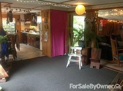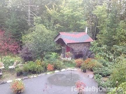 Private lot 1/2 mile from village center features gorgeous landscape complete with peach, apple, and plum trees, bocce court, terraced walks and patios, fire pit, sauna, treehouse, 2 car garage. Mobile home livable but needs some TLC. Great starter home for enterprising family close to charming village with great school system. 1/4 mile to ocean, Acadia National Park, lakes. Dozens of hikes nearby. Home features new cedar deck, numerous renovations, new water heater, new furnace (2004), mud room. There is a utility parking area for truck/business/trailer, parking for four vehicles outside garage. Over one acre of woods, mostly white pine, ash and spruce, has been source of firewood. Wood stove supplements oil furnace. Lovely wood fired sauna negotiable with sale. Many estate sized perennials come with sale, including rhododendron, azaleas, native kiwi, forsythia, purple smoke bush, ornamental flowering plum, crabapple trees. Reliance peach and Empire apple produce many good fruit yearly. Small veggie garden farmed organically for ten years. The treehouse, built in 2002, has a heated indoor space with sleeping loft, electric lights and outlets, and upper deck with limited ocean view. Both decks are 8'x 16'. It has been rented to summer guests and used for kids sleepovers. The house features a cat door to front deck, and a dog door leading to fenced backyard, perfect for pets. Mud room built in 2003 has storm door, windows, many coat hangers, storage chest, rubber membrane roof.Additional property info: http://www.forsalebyowner.com/listing/0A4D4?provider_id=28079