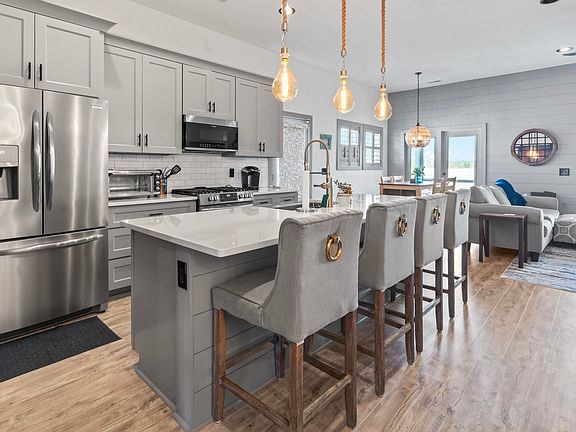 - Features: Breakfast Bar, Kitchen Island, Pantry, Stainless Steel Appliances, Solid Surface Counters