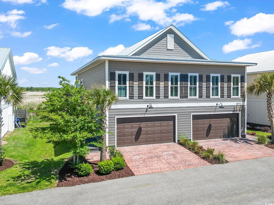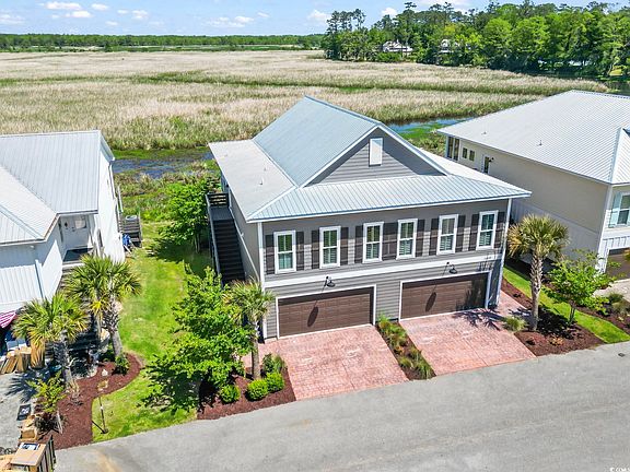 Absolutely stunning and full of charm, this exceptional residence offers a lifestyle defined by comfort, elegance, and unmatched scenery. Perfectly positioned to showcase panoramic views of the picturesque historic ricefields/marsh, the tranquil Waccamaw River, and the scenic Intracoastal Waterway, this home is a true gem that delivers unforgettable sunsets from every angle. Nestled in the sought-after gated community of Litchfield Plantation, residents here enjoy exclusive access to a private oceanfront beach house - just one of many impressive amenities. This beautifully appointed 3-bedroom, 2.5-bath townhome has been used as a second home, with an attached two-car garage radiates pride of ownership and has been meticulously cared for. Step inside to discover a thoughtfully crafted open-concept floor plan enhanced by luxurious LVP flooring and soaring 10-foot ceilings, creating an inviting and spacious atmosphere throughout. The gourmet kitchen is a chef's dream, featuring an oversized 8-foot island with an apron-front stainless steel farmhouse sink, sleek ice white quartz countertops, stylish gray custom cabinetry, a subway tile backsplash, and high-end stainless steel appliances including a gas cooktop. Flowing effortlessly into the main living area, the dining space is perfectly positioned to take in those jaw-dropping views. Double sets of French doors lead to a screened porch - an idyllic spot to relax and take in the serene landscape. A barn-style sliding door reveals a tucked-away laundry area with a full-size washer and dryer, pantry, and a convenient half bath nearby. The main-floor primary suite is a private retreat, offering two closets (including a generous walk-in), a ceiling fan, and a spa-like ensuite bathroom with a tiled shower and quartz-topped vanity. Downstairs, you'll find access to the garage, a comfortable guest bedroom, full bath with a tiled garden tub/shower combo, and a cozy den that opens through French doors onto a low-maintenance Trex deck - perfect for soaking in those marsh views. Additional features include a durable metal roof, under-stair storage, accent walls with shiplap paneling, plantation shutters, custom window treatments, a tankless gas water heater, an exterior gas grill hookup, and a transferable termite bond. The Litchfield Plantation lifestyle includes a refreshing community pool, breathtaking common areas, and of course, that exclusive oceanfront beach house. Conveniently located near world-class golf, award-winning restaurants, charming boutiques, and endless opportunities for water recreation, this is coastal living at its absolute finest! Measurements are not guaranteed. Buyer is responsible for verifying. Please ask your agent about lender closing costs incentives for this property.