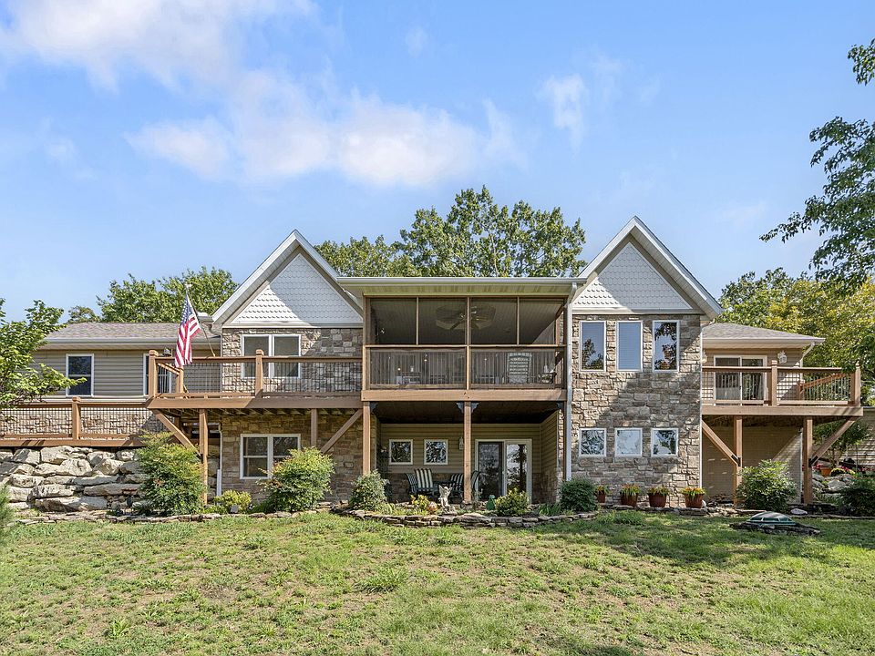 You will look a long time to find a nicer Home. It has been taking care of with love. Very Nice 4 bedroom 3 bath home that has a 16x20 outbuilding, Great room has high ceiling and a fireplace with a Blower. The great room also has room for a dining table. Beautiful hardwood floor. Screen in porch. New Carpet install 2018. In the Kitchen the GE Refrigerator and the Microwave were installed in 2019. Hot water heater install in 2018. In the lower level you will find a propane Buck Stove and the fourth bedroom with a Armoire that will stay with the home. In the Storm Shelter room the Safe will stay.You will see a small door that you can open to see the crawl space where the Maytag Furnace and The Ruud hot water tank. Oversized 2 car Garage 28x 28. You have a dog this home has a nice place for your dog outside. This home is only minutes to shopping in Kimberling City or Branson West. You will also just a few minutes to The Lake and the Kimberling City Marine where you can launch your boat. It has a small winter view. Branson is just a few minutes away with all it has to offer. COME AND TAKE A LOOK AT THIS NICE HOME!!