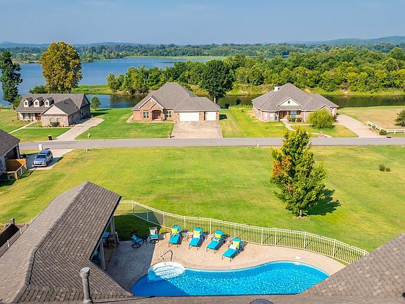 Gorgeous home in The River Plantation on 2 lots with spectacular views on the Arkansas River. You will enjoy all the space this home offers. There are 2 large living areas off the kitchen with more room for entertaining than you can imagine! The 4th bedroom is set up now as a craft room but could easily be a very large office. The master bedroom has a seating area with gas log fireplace. The master bath is huge and has a very large closet with washer/dryer hookups. You will feel like you are at a resort in the backyard that features a pool and large covered patio for entertaining. WELCOME HOME!!!