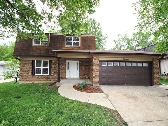 Wonderful 2-story home, situated on a picturesque lot in popular Spencer Creek North Village, in the heart of St. Peters. This meticulously maintained 4 bedroom and 2.5 bath home boasts a bright and open floorplan with over 2400 square feet of living space including finished lower level. A charming covered front porch welcomes you home. The Entry Foyer opens to the sunlit Living Room with large picture window, and French doors leading to the spacious Dining Room. The Kitchen features plenty of cabinet and counter space, and included refrigerator, and opens to the Breakfast Room with large picture window overlooking the backyard. Adjoining Family Room boasts a floor-to-ceiling brick fireplace and atrium double doors to the covered patio. Convenient main floor Powder Room. The second floor features a spacious Master Suite with a walk-in closet and private Masterbath, plus 3 additional bedrooms and an additional full bath. The finished Lower Level includes a huge Recreation Room and private Den/Multi-purpose Room. Another feature: 2-car attached garage. Relax outside on the covered patio and enjoy the large, level yard that backs to Spencer Creek Park. The location couldn’t be better – near shops, restaurants and highways!