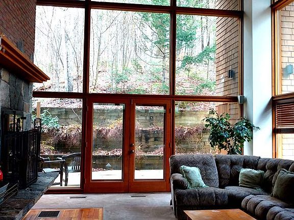 Great contemporary home with winter views of ski trails, located just off the Killington Road within walking distance to restaurants, nightclubs, shops. Floor to ceiling stone and brick fireplace within the spacious living room surrounded by glass to afford winter views through trees of ski trails. Private feeling on a town maintained road with beautiful 4 season landscaping. A one of a kind home in the heart of Killington waiting for you to see it.