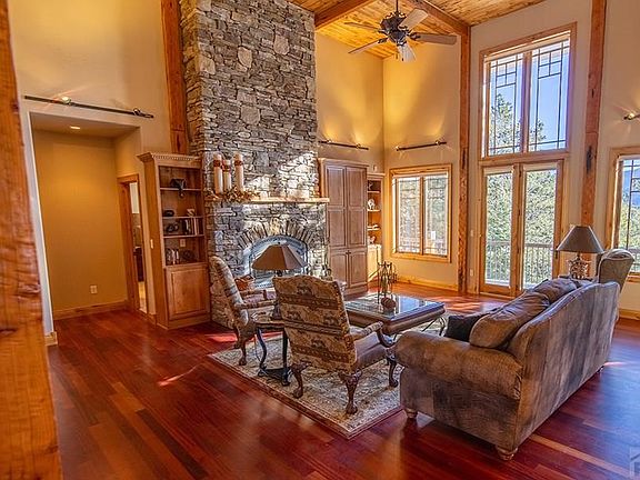 Fantasize a distinctively designed estate, for your own personal lifestyle. Savor the opportunity of luxurious, relaxed living and amazing views in this one-of-a-kind idyllic setting on 11.43 acres. Transform your life and live the way you want to live. This three-bedroom, four-bathroom home has a three-car attached garage, giving you 3,420 square feet of spacious elegance. 50x30 detached garage/shop with a wood burning fireplace. Living room features vaulted ceiling with lots of natural light and imagine cuddling up to the cozy fireplace with a good book. Every night, drift off to sleep to the subtle sounds of the forest, then wake up to a spectacular sunrise. Main level features the primary bedroom suite with adjoining bathroom that includes walk-in shower, soaker tub, private toilet and double sinks. Laundry room with mud sink is located right off the primary bedroom. Modern gourmet kitchen includes large island with a prep sink and breakfast bar. Kitchen also includes double ovens, 6 burner Wolf range, granite countertops, tile backsplash and Brazilian wood flooring. Dining area located right off the kitchen will allow you to host dinner parties with your friends and family. Office with built-in desk. Radiant heated floors. Basement includes family room, 2 additional bedrooms, 2 bathrooms and a sauna. Spend your winter nights in the hot tub out on its own deck overlooking the valley. All furnishings are included.