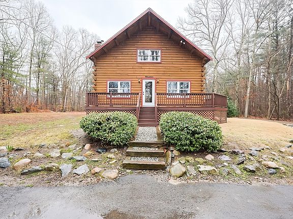 Seller is requesting highest and best offers by Sunday 3/30 by 4pm. Please make offers good through Monday 3/31 at noon.A rare opportunity to own a picturesque log cabin tucked away at the end of a quiet side street in a great Norton location! Upon entering the front door you are greeted by towering vaulted ceilings and a beautiful masonry fireplace. Also on the first floor is the primary bedroom, full bath and of course the beautiful kitchen with granite counters and SST appliances. Upstairs features two bedrooms, another full bath and a lofted view of the open first floor below. The lower level is almost completely finished and features two cozy rooms with recessed lights and wall to wall carpeting. The basement also contains a laundry area and a second refrigerator (all appliances included in sale). A massive bonus is the detached 2 car garage with an unfinished potential accessory apartment above. All of this on a beautiful 2+ acre lot.