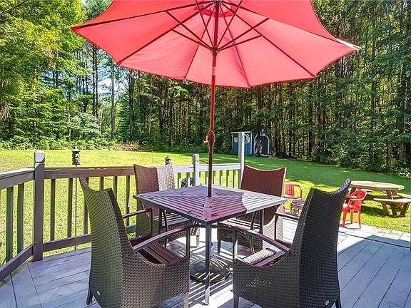 PARADISE FOUND in this secluded WOODED SETTING on a cul de sac just off Grannis Rd. This LOVELY SPLIT LEVEL with a contemporary flare boosts UPDATED kitchen with all appliances and hardwoods flowing into the DINING ROOM. INTERESTING ANGLES greet you in the FOYER, Step up to the Living room & MASTER ENSUITE with large sitting room/bath and a separate full bath for guests. Downstairs enjoy a GREAT ROOM with removable BAR, two bedrooms and a 3rd full bath. Enjoy ample basement storage space, a laundry with washer - dryer combo and a two car garage. The large deck off the dining area with sliders make outdoor dining & entertaining easy. A sizeable SHED is perfect for your mower & snow mobiles. A pellet stove in the basement adds to the economy of winter heating. OPEN HOUSE CANCELED - offer 2019-10-07