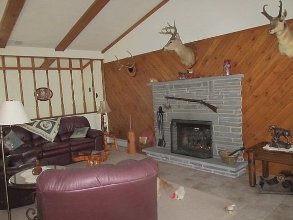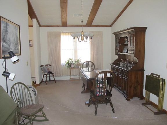 Newer ranch style home with all the amenities. Beamed cathedral ceiling in living area. Eat in kitchen and formal dining room. Gas fireplace in living room. Full basement ready to finish. gas hot water baseboard heat with central air. Large rear porch, and storage shed.