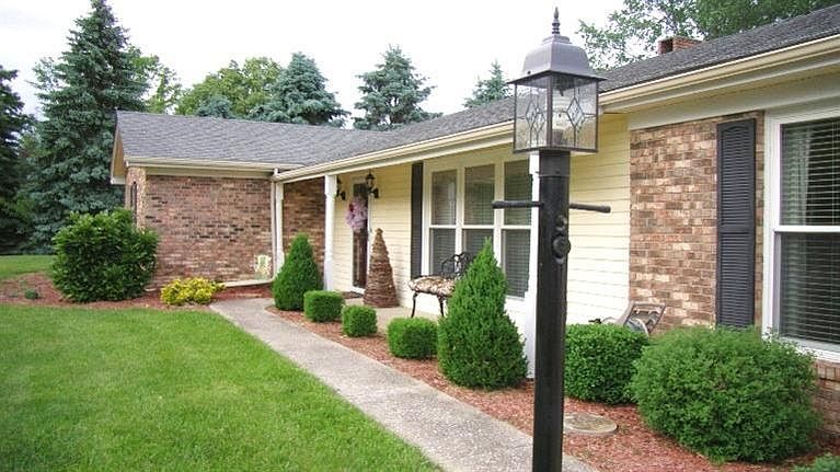 All Brick, all on one floor, move-in ready with many upgrades. This beautiful, well maintained ranch with oversized, attached garage sets on a landscaped lawn. Don't miss the gourmet kitchen with brick gas fireplace in eating area. Stainless steel gas range, double door refrigerator, dishwasher and microwave, all recent additions, will remain with property. Entry foyer, formal living room, formal dining room, two full baths plus half bath, all recently redecorated. Quality throughout! Nice level lot. Only one step into house. Master Suite will hold large furniture, plus there is a separate sitting room in Master Suite. Large storage building at rear of house, perfect for workshop or hobbies. Note: Steel cabinets in storage building will not remain.