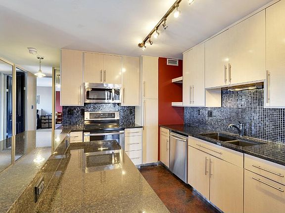 Totally renovated 2BR/2BA unit at The Towers boasts breathtaking river vistas,gorgeous concrete flrs,center island maple kit w/granite & SS appl,generously sized master w/ample closet space,beautifully tiled baths,sun-drenched living rm,& open flr pln ideal for entertaining!This building has it all with roof top deck,pool,exercise rm,tennis courts,lush grounds,grill area,& more!Perfect downtown location means that you have access to the best events,theaters, & restaurants too!