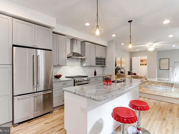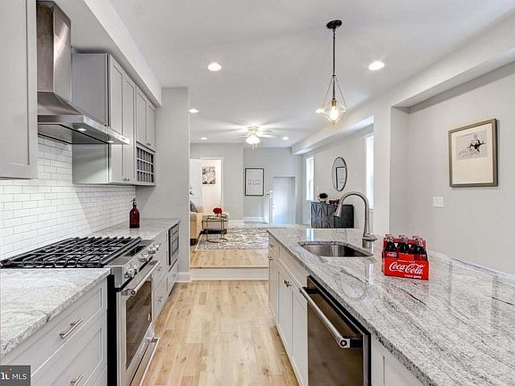 Fantastic & new 15ft wide EOG, 4BR & 3.5 BA renovation w/ large garage (2 car possible)! Enjoy a perfect Butchers Hill location, gourmet kitchen w/ granite, SS appliances & custom cabinetry, roof deck w/ interior stair access, enormous rooms, premium finishes throughout, HW floors, main level powder room & a private deck off master BR. 2- year builder warranty. Perfect city living!