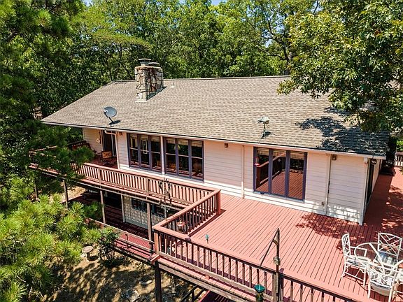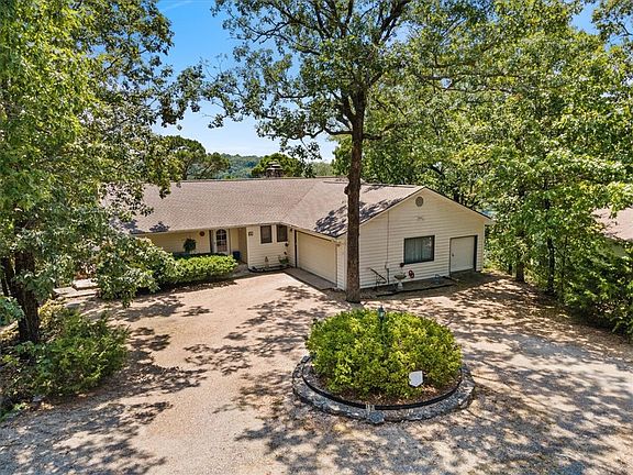 Amazing opportunity to own an affordable and very large, well maintained home close to Table Rock Lake and adjacent to the beautiful 18 hole golf course at Holiday Island. This 2 story home has a primary suite on both floors featuring oversized bedrooms with en suite bathrooms and private living/lounge areas. The open floor plan with extremely oversized living room is perfect for entertaining. The views will have you convinced you are living in a tree house. Living room, kitchen and dining room are all accented with a warm and welcoming wood ceiling. Gorgeous floor to ceiling natural stone fireplace extends itself to the lower level family room. Want to just relax? Enjoy the beautiful Ozark atmosphere from either level on a full sized deck. These peaceful and private outdoor spaces further enhance the appeal & charm of this awesome home. Shopping, Art Galleries, 5 Star Restaurants, Night Life and all Eureka Springs has to offer is just a few miles away. Two car garage even has a golf cart side door for convenience.
