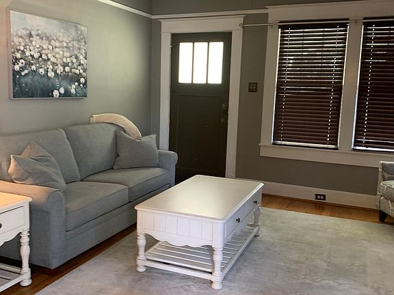 Charming historic cottage in midtown includes 2 bedrooms, bathroom, kitchen and breakfast nook, dining room, living room, laundry room, and front porch. All hardwood floors except for vinyl flooring in the bathroom. Kitchen has been upgraded with granite countertops. Spacious bathroom with clawfoot bathtub. Driveway with parking in the back and a fenced backyard. This is a very friendly, social street with caring neighbors. We are seeking a tenant who will help care for and love this house, as well as participate in the neighborhood. Security system available for activation if desired. Dogs ok upon owner approval. A non-refundable pet fee will be included if applicable. Utilities are not included and tenant is responsible for yard maintenance. NO SMOKING.