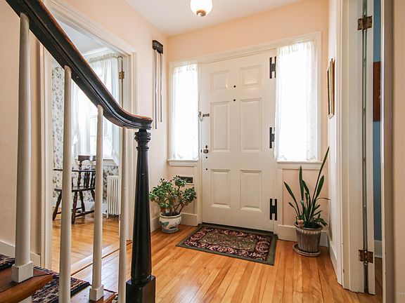 This lovely historic Colonial is tucked away on a side street in the heart of Augusta. The property has been well maintained and features an oversized garage, beautiful perennial gardens with berries and an apple tree. The house has hardwood floors throughout, and original architectural character. The first floor has an entryway leading to a large, open kitchen and dining room. There's a half bathroom, a large living room with French doors and wood burning fireplace, and a sunny den on the first floor. The second floor features a full bathroom, four good sized bedrooms and plenty of storage including a cedar closet. This house is bright and flooded with natural light throughout with plenty of windows. Both the attic and basement are large open spaces that could be renovated. Enjoy the comfort of this quaint neighborhood and be in close proximity to all Augusta has to offer including access to major highways, the Augusta airport, schools, walking/hiking trails, downtown Augusta and the state capitol.