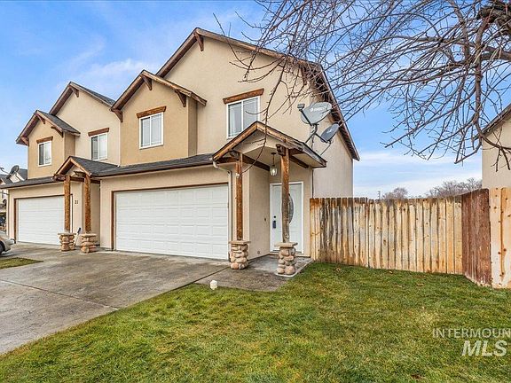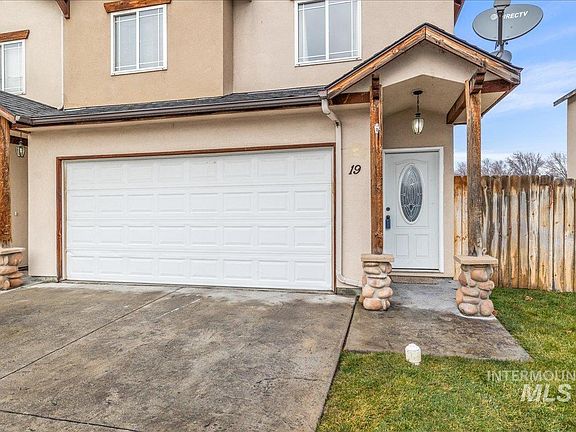 Welcome Home to an excellent value on this beautifully laid out 3 bedroom, 2.5 bath townhouse with only one adjoinging neighbor. Added bonuses with all new flooring, Refrigerator, Washer, & Dryer make this home truly move in ready! Enjoy wide open living spaces off of the private entrance & really stretch out in the sprawling primary bedroom suite with walk-in closet accompanied by 2 more full sized bedrooms upstairs. Privately fenced back yard with firepit, patio & no rear neighbors! Very low yard maintenance with the HOA doing all of your mowing & sprinkler maintenance. Easy access to shopping & Garrity I-84 Exit, this is an unbeatable opportunity for a family or Investor! Sellers prefer a 60 day rent-back.