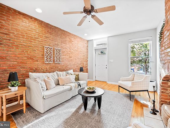 Welcome to 19 South Washington Street. This charming 2-bedroom, 2.5-bathroom home offers 1,720 square feet of thoughtfully designed living space PLUS PARKING! As you step inside the front door you enter into your large living room with decorative fireplace, wood floors, and coat closet (a bonus for a row home!). Off the living room you'll find a convenient first floor half bath. In the middle of the home you have a large dining area with windows that let in great light. This leads to your bright kitchen with white cabinets, updated countertops and backsplash and lots of storage. Behind the kitchen is a large separate laundry area/mudroom. Guests coming over? Just shut the door to keep shoes and coats out of view! The whole first floor offers a ton of wonderful space to live and entertain. Off the laundry room there are two exterior doors- one leading to the side of the home and the other leading out to your fenced in patio and BBQ area with built in grill and pergola- wonderful for summer entertaining. Through the secure gate you have your own, private, PARKING PAD- a huge plus! The patio also has a built in storage shed. The second and third floors each have a nicely sized bedroom with ample closet space and their own ensuite bathrooms- a great layout to have your own privacy and space. Wood floors throughout the first floor and upper level hallways and stairs. NEW ROOF This home is located in Butcher's Hill and close proximity to Johns Hopkins, Patterson Park and many of Baltimore's best shops and restaurants.