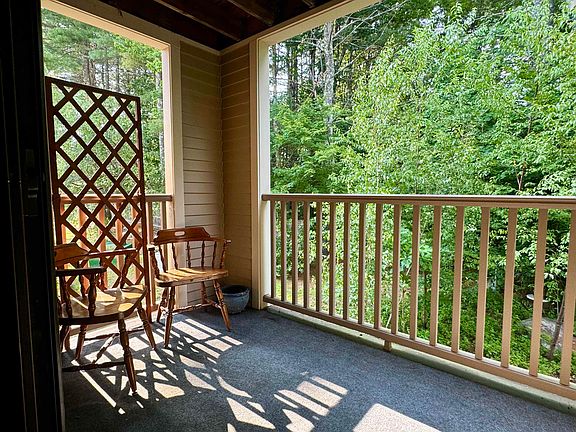 Affordable 2 bedroom garden style apartment on the 2nd floor of popular Saco Woods condominium development. Spacious living/dining rooms with well equipped kitchen. Kitchen is equipped with some cooking supplies as well as utensils and dinnerware. Partially furnished with dining set and 6 chairs, along with queen size bed and dressers. 2 good size bedrooms both with large windows for extra light. Full bath with tub/shower and new-er stacked washer/dryer. Home heated by propane boiler Forced Hot Water. A lovely outdoor balcony faces the back and adds to the ambiance of being a residence in the Saco Woods community. Acres of common land, include walking trails and a playground. Association also provides postal boxes at the entrance for convenient mail delivery. Very easy access to and from everywhere, just a few miles outside of Conway village in the Mt Washington Valley, heading towards Fryeburg Maine. Good references and credit score is a must.