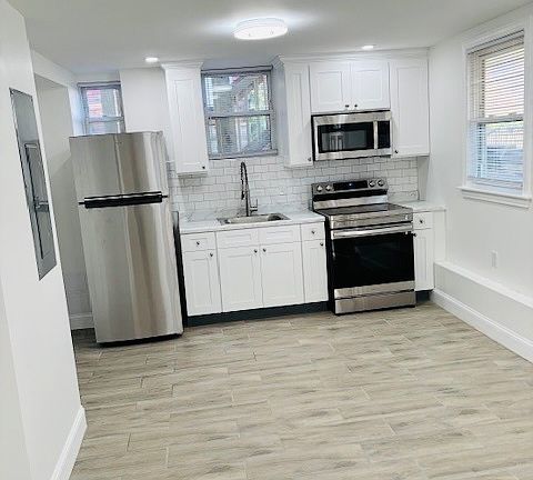 Brand New Bathroom Brand New Kitchen Central Air Coin-op Laundry, Lead certified Eat-In Kitchen Laundry in Building Microwave New Cabinets New Flooring New Stainless Appliances patio, ceramic flooring Public Transportation Refrigerator