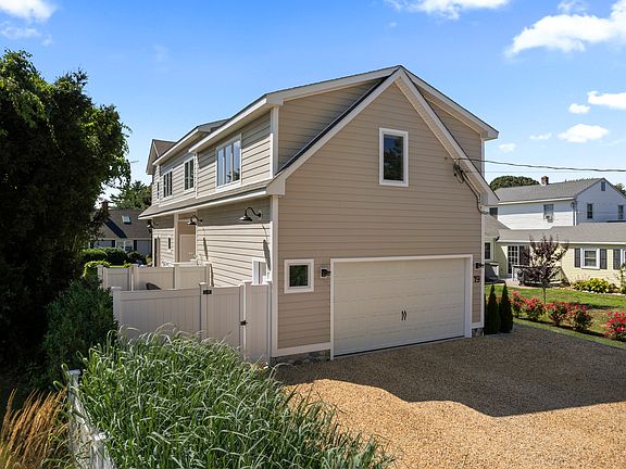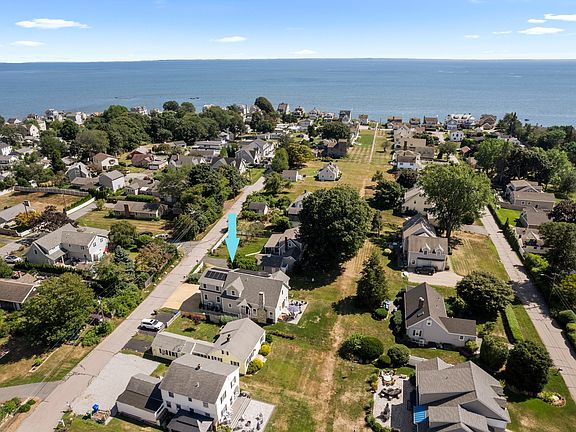 Just steps from the Shoreline! This exquisite 2,207 square foot Cape Cod style home, built in 2022, blends timeless charm with modern sustainability. Designed with minimal environmental impact in mind including solar panels, Everlast composite siding and Mitsubishi Hyper Heat heat pumps. The custom kitchen is a chef's dream boasting Quartz countertops, a spacious island and high-end finishes. With 4 bedrooms and 3 1/2 baths, the layout includes a stunning Studio Apartment/In-Law Suite. The open floor plan features Cali hardwood flooring, soaring ceilings, a Rumsford fireplace and numerous windows bringing in the natural light. After a day at the beach, rinse off in the refreshing outdoor shower, then unwind with dinner on the stone patio with distant water views. Plenty of parking for family and friends. A huge basement with 9 foot ceilings can be finished for additional living space. Whether you're hosting, relaxing or enjoying the nearby beach, shops and restaurants, this home offers the perfect balance of luxury and comfort in a serene coastal setting. Flood insurance not required. Be sure to review the Special Construction Features summary. This gem is not to be missed!