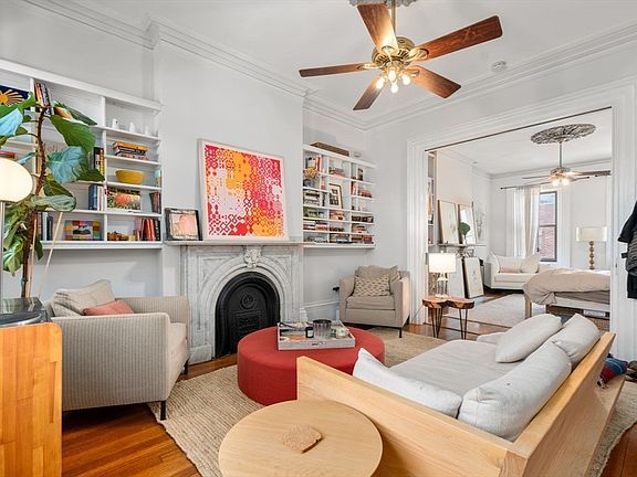 Stunning Charlestown brownstone, 1 bed with office or 2 bed, 745sf of historic period charm with modern convenience. Features include two marble fireplaces, pine floors, 11-ft ceilings with medallions, crown molding, custom built-ins, ceiling fans and renovated bathroom. The updated eat in kitchen features newer cabinetry, stainless steel appliances and recessed lighting. The cozy living room with elegant fireplace is accented by impressive tall windows, hardwood floors and custom built-in bookshelves. The bedroom includes 2nd fireplace and ceiling fan, with a bonus room ideal as an office or 2nd bedroom (2nd small bonus room accessed through primary). Great potential with the deeded deck rights. Extra storage and common laundry may be found in the basement. Located in the Gas Light District, this pet-friendly unit is a 10-minute walk to the Orange Line MBTA, Whole Foods, CVS, and local cafes/restaurants. Don’t miss out!