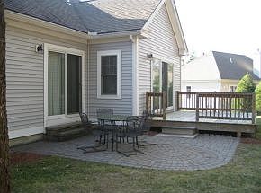 Patio and deck in private yard bordered by flower garden. 4 car driveway - not shared! Step into the chandeliered front entry viewing the gas fireplaced living room and the columned, hardwood floored dining room. Pantry, appliance garage and tiled backsplashed kitchen opens to bright dining area with windows on 3 sides.Private first floor master BR suite and 2 other bedrooms at other end of house, 2 full baths. All in superb condition.