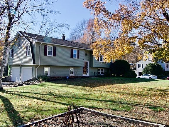 Welcome Home! This beautiful raised ranch is nestled at the end of a quiet cul-de-sac in the center of Wilbraham. Upon entering, walk up the stairs to the main floor and into the open living room, with vaulted, beamed ceilings and plenty of natural sunlight. There is plenty of space for cooking and gathering in the kitchen, which opens up into a separate dining room. The enclosed sunroom is off of the kitchen, which provides extra space for family, friends, and a place relax! Down the hall are three spacious bedrooms, including a master bedroom with half bathroom. The lower level includes more finished space, perfect for a family room, play room or office space, equipped with a laundry room and half bathroom. Don't forget the attached deck overlooking the backyard, above ground pool and pergola! Don't miss this one, schedule a showing today!