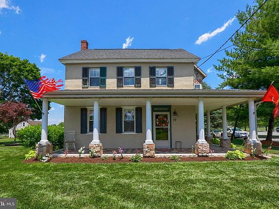 Cozy farmhouse conveniently located mins from routes 222 and 30. This home offers 3 bedrooms with a large primary suite with vaulted ceiling, and 3 full bathrooms, partially finished basement, oversized detached 2 car garage with finished second floor and renovated sunroom, mini-split HVAC systems, rear deck and patio lead to professionally landscaped and meticulously maintained grounds. Main level office and laundry. Move right in, washer/dryer and refrigerator convey with the home.