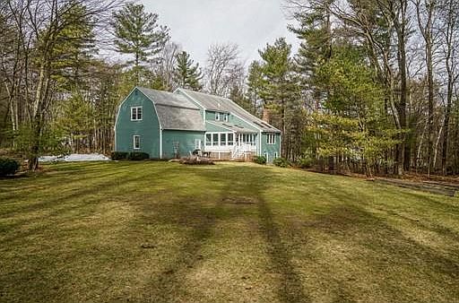 Privately nestled on a 1.4ac level, treed lot w/ a fabulous large backyard, this impeccable colonial has been lovingly & continuously updated. With convenient access to retail, dining & rtes 495/90, this wonderful family home features a white kitchen w/granite island, GE Profile appls. & hardwd floors that flow through most of the 1st floor. Skylights provide natural light in the cathedral family room w/ floor to ceiling FP, wainscoting & access to the inviting 3 season porch w/ beadboard ceiling. The 2nd level offers 5 rooms including an office & a spacious master suite & elegant master bath w/ a marble shower & floor, custom frameless door, 2 custom built vanities w/ granite counter tops. The hall bath has polished chrome, custom frameless door, tiled tub surround & 12"x24" porcelain tile ~ beautiful. The w/o finished lower level has a full window. Updates include: new driveway '15, windows '14, '06, '07, well pump '14, roof '09, furnace '10, house painted '14 & more.