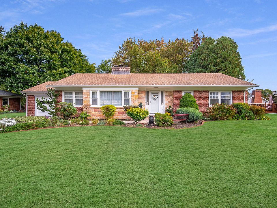 Sprawling Ranch located on nice quiet street! Home boasts 3 good-sized bedrooms, 2 full baths, a formal living room with fireplace and a connecting dining area. Kitchen is fully applianced and has a family room/den area attached which has a slider that leads to a lovely patio. Home has a nice flow to it. Laundry is located on the first floor for your convenience. Central Air, one car attached garage with auto door. The lower level is fully finished with lots of space, but there is currently no heat down there. However, that can be easily added for additional living space. Large level lot on a beautiful street.