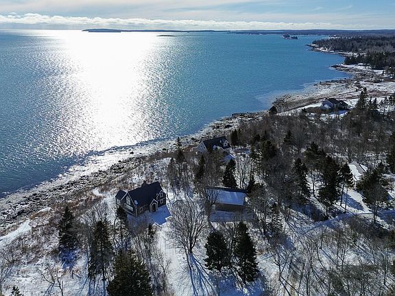 Perched high on a bluff in a quiet, peaceful, and private location off the beaten path, this property offers an unparalleled command of the surrounding islands and the vast, open ocean. This unique, high-quality post-and-beam home boasts one of the finest views in Downeast Maine, a spectacle that must be seen to be believed. Inside, you'll find a beautifully appointed residence featuring a cozy fireplace and an open concept design.