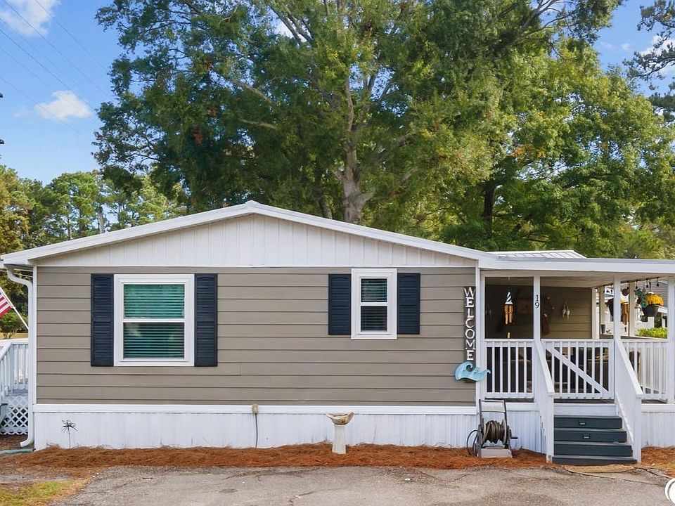 Pristine & Move-In Ready Double-Wide on Large Lot Close to the Beach!!! This fully renovated property has plenty of room for everyone and all your beach toys!!! 3 bedrooms and 2 full baths plus large bonus room with vaulted ceiling and gas fireplace. The kitchen is gorgeous!!! New stainless-steel appliances (2021), new stainless farmhouse-style sink, new Shaker cabinets (2021), new tile backsplash (2022), new lighting, countertops and new LVP flooring throughout (2022). Updated plumbing, tankless water heater and primary bath renovation (2022), some new duct work & new electrical panel (2022). Fresh paint interior & exterior. Outside enjoy new Trex decking, Hardi-plank siding on right side porch (2020), new HVAC (2021), new metal roof (2020), and tons of other upgrades including the addition of a large shed (2020) with overhang for motorcycle or bikes, huge workshop and fabulous outdoor kitchen area. Absolutely move-in ready, just bring your koozie and swimming suit!!! All measurements are approximate. Buyer to verify all measurements, complete park application and gain approval prior to closing.