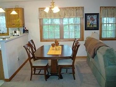 Spectacular condo with wide open floor plan...excellent condition cathedral ceiling livingroom with balcony, huge atrium window and lots of light. Totally private deck and side yard with many trees. Bedrooms are huge, master bedroom with bath entrance from both hall and bedroom, walk in closets...lots of windows. Clean as can be! Basement has finishing possibilities. Plenty of storage in both the garage and built-in shelving in the basement. Nice farmers porch and deck to enjoy the seasons