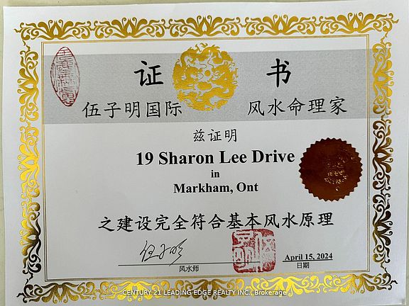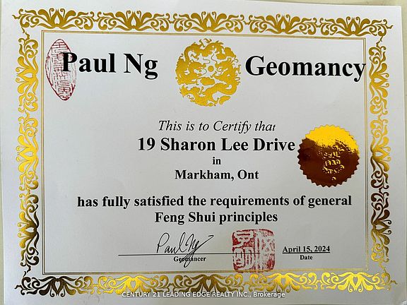 Welcome to 19 Sharon Lee Dr., FENG SHUI CERTIFIED BY MASTER PAUL NG!! This home is on a HIGH LIFE CYCLE FOR WEALTH, 2 WEALTH CENTERS, PLUS GOOD ENERGY FOR HEALTH & RELATIONSHIPS. THE INCOMING STREET BRINGS IN MONEY ENERGY, HOME POSITIVE. A contemporary gem in Markham's coveted school zone. This meticulously maintained home boasts a main floor primary bedroom with walk in closet and ensuite, ideal for convenience and comfort. The open-concept layout features a renovated gourmet kitchen with high-end appliances and granite countertops, perfect for entertaining. Upstairs, discover two additional bedrooms. Outside, the backyard oasis offers a tranquil retreat. With top-rated schools, parks, and amenities nearby, this is upscale living at its best. Don't miss out schedule your showing today !