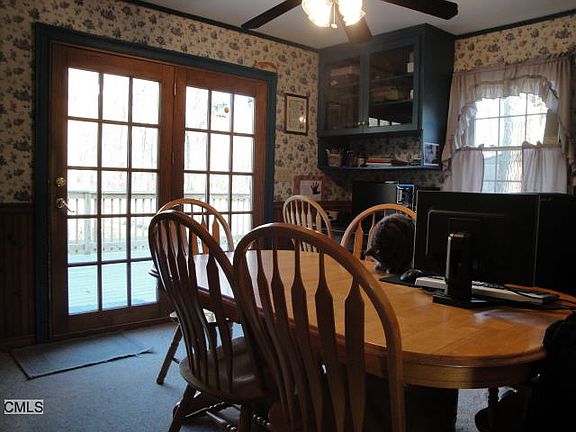 Charming stone cape on Cul de Sac, water views of pond from expansive deck. Ct. basement system pumps installed in 2017 and a new roof 6 months ago. Cook your meals on this wonderful chef grade range. Fireplace with wood insert in the living room. Great stater home with perfectly flat driveway and yard for your family.