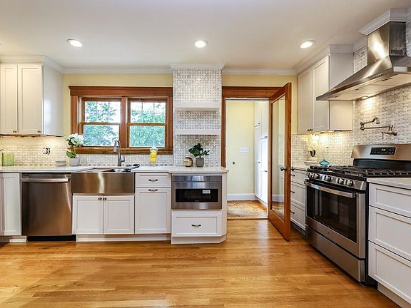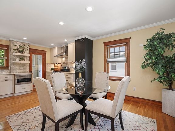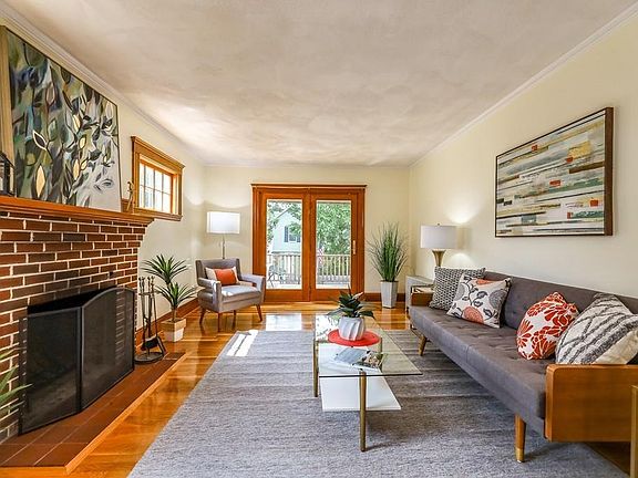 Welcoming glass-enclosed front porch leads to an open floor plan dining area and newly updated kitchen. Custom white cabinets with quartz countertops, crown molding, stainless steel appliances, and farmers sink & pot filler, pantry cabinets with pull-out drawers/storage in the mudroom. Rear access to a spacious deck overlooking a fenced yard. Front to back fireplace living room with french doors to deck, upstairs 3 bedrooms with laundry hook-up on the 2nd floor, pull down attic. Family room in basement with full bath & closet and access to rear yard and patio under deck. Harvey windows/ 200 amp electrical/ Central Air/ Central Vac./3 zoned heat/off-street parking. Walking distance to commuter rail, bus and Centre St shops & restaurants, easy access to VFW Parkway, and Longwood Medical.