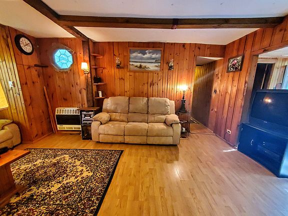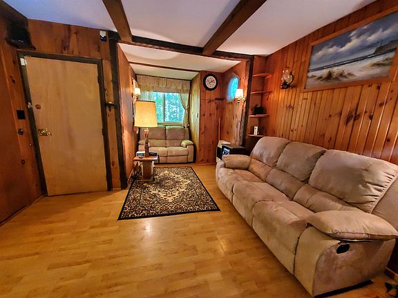 2000+ sq ft , 3 bedroom, 2 bath camp with garage and additional outbuildings in East Dover. A funky and quirky escape in the woods of Vermont, this unconventional home has all of the systems for 4 season use and was a primary home for many years. Stay warm all winter long with forced hot air heat, 2 wood stoves, and gas heaters. A full-sized kitchen and bathrooms, cozy living room, den, full dining room, and sunroom are spread out over multiple wings of the home. Private wooded lot with great deck space. Newer 1 car garage or workshop, multiple sheds, newer metal roof. The home started as a manufactured home and has been modified with many wood frame additions. Likely a cash sale will be required.