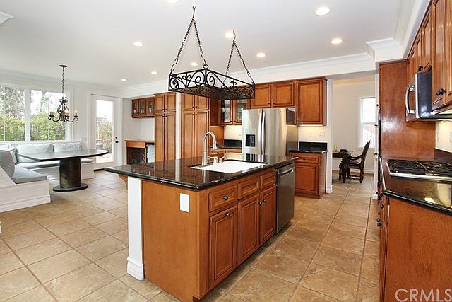 Welcome Home to this wonderful Sterling Glen Plan 3 Alt. Residence built with the Large Optional Loft Bonus Room Upstairs. The appeal starts at the curb of this property with a great interior location on the View side of Shively Road in the Amazing Community of Ladera Ranch. Original Floor Plan has been expanded adding extra space in the Kitchen. This spacious home boasts of 9' ceilings throughout. Romantic Fireplace in Spacious Family Room. Ground floor Bedroom & Full Bathroom. Travertine tile flooring throughout ground floor with inlay detail in the Entry & Dining Room. Newer carpet upstairs. Freshly Painted Interior & crown moldings throughout. French Doors to rear yard from both Dining Room & Kitchen Nook. Kitchen boasts Granite Counters, Stainless Steel Appliances, Wine Refrigerator, & additional added Upgraded Cabinetry storage. Opulent Master Suite with Dual Walk In Closets & added Third Walk In Closet. Dual Sinks, Soaking Tub, & Walk In Shower make the Master Bath truly a retreat. French Doors from Master Suite Lead to an added Expansive deck with Gorgeous Views & Amazing Sunsets. Entertainer's yard with Built in BBQ Kitchen Area, brand new refrigerator, Fire Pit, In Ground Spa, Covered Patio & Stairs to the Upstairs Deck. Spacious secondary bedrooms. Dedicated Tech Area with Built In Desk & Multimedia wiring. Large Upstairs Laundry Room with sink & Pull Down access with ladder to a huge Attic Storage. Direct Access to 2 car garage & separate 1 car storage.
