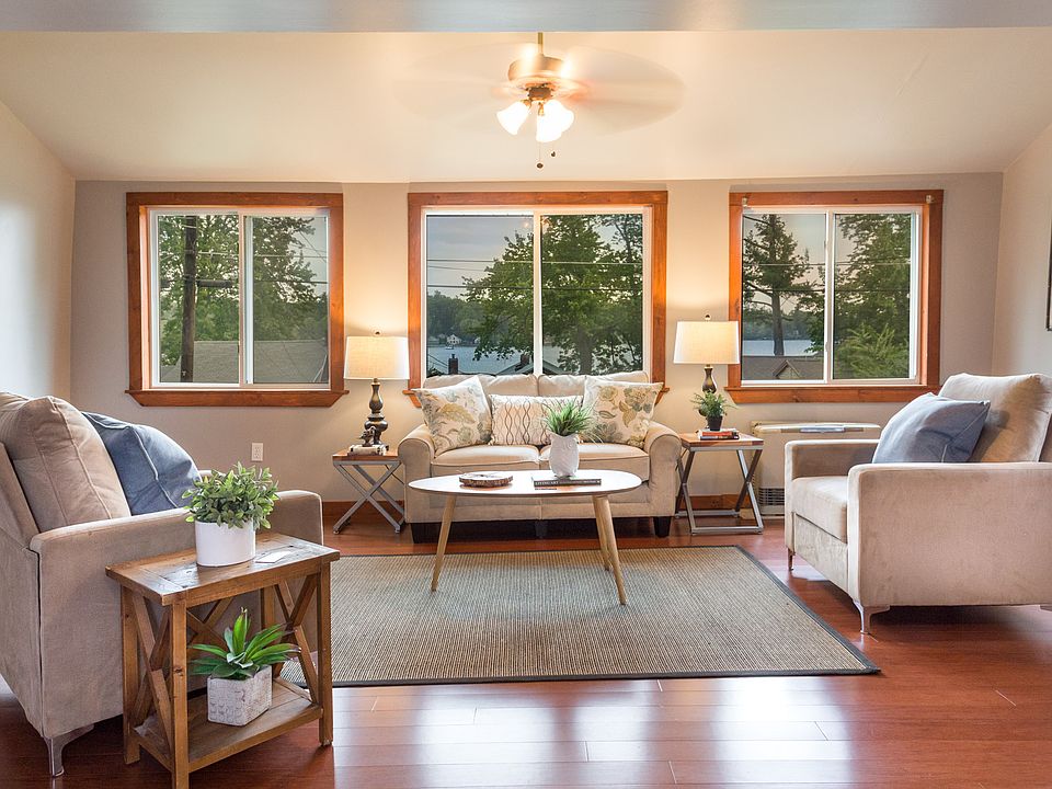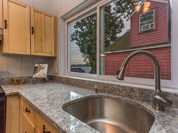 New flooring & freshly painted home with many updates and water views of Wash Pond. Year-round 1+ bedroom home (1 bedroom plus a loft area) with access to the water & boat launch area. Updated kitchen with maple cabinets, granite counters, & a new stove. Bright living room that looks out to the water with bamboo flooring & a fireplace. Vinyl siding, Rinnai heater, newer septic system. Enjoy the grassy back yard area plus a 1 car detached garage. This is a great alternative to renting or condo living. Property will not qualify for FHA financing.