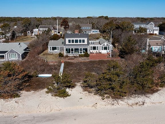Located on the sandy shores of Nantucket Sound, as the new owner, you can step out your door to a spectacular stretch of white sandy beach for barefoot walking, take a swim or sit on your patio and enjoy the tranquility of the rolling seas. The sunfilled living room with a wall of windows to bring the outside in has a fireplace and a slider to the large brick patio to enjoy dining outdoors. The dining room and almost every room offer phenomenal ocean views. The first floor has three bedrooms and two full bathrooms. The primary suite is privately situated on the second floor with a full bath, sitting area, and a private deck overlooking the sandy beach and boasting panoramic ocean views. Buy now to enjoy this summer season