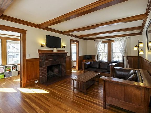 The house you've been waiting for! Located on a quiet street in the very desirable West Roxbury Parkway area, this well-maintained classic Colonial is a real gem! Wonderful original details are evident throughout this bright and sunny home. The first floor front to back living room features gumwood wainscoting, exposed beams, brick wood burning fireplace, large double windows and entry to a cozy sunroom, updated eat-in kitchen flows easily into the dining room with a lovely china cabinet, wainscoting, crown moldings and Victorian style window, convenient laundry room, 1/2 bath and access to inviting outdoor porch. The second floor offers the master bedroom and three other bedrooms, built-ins and snug window seat in hallway, and full bath. The third floor is spacious and appropriate for a bonus/game room or home office with plenty of additional room for storage, backyard is level and fenced in.