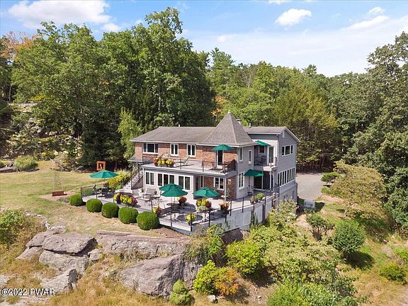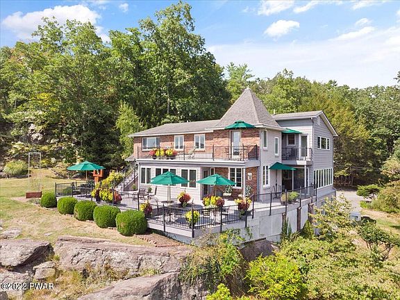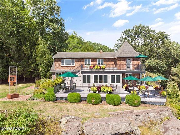 Perched on a bluff 300 feet above the Delaware River, this one-of-a-kind listing offers panoramic views of the Catskill and Pocono Mountain ranges and the winding Delaware River. Perfect for Air BNB, exclusive restaurant, family or company retreat, wedding venue, private residence, or a return to the award-winning Bed and Breakfast it once was, this 5-bedroom, 5.5-bath mountain house offers endless possibilities. Built in 1952, it was fully renovated in 2004, combining modern conveniences with old-world charm. Enjoy breathtaking vistas from the multi-level decks and stone patios surrounding this stunning home, or hike on the trails threaded through this 60-acre parcel with dramatic rock outcroppings and experience the unspoiled forest. The captivating setting of this very private..., Beds Description: 2+BED 2nd, Beds Description: 1Bed1st, Baths: 1 Bath Level 1, Baths: 1/2 Bath Lev 1, Baths: 2 Bath Lev 2, Eating Area: Formal DN Room