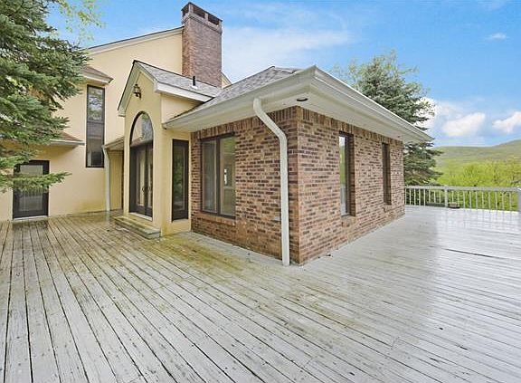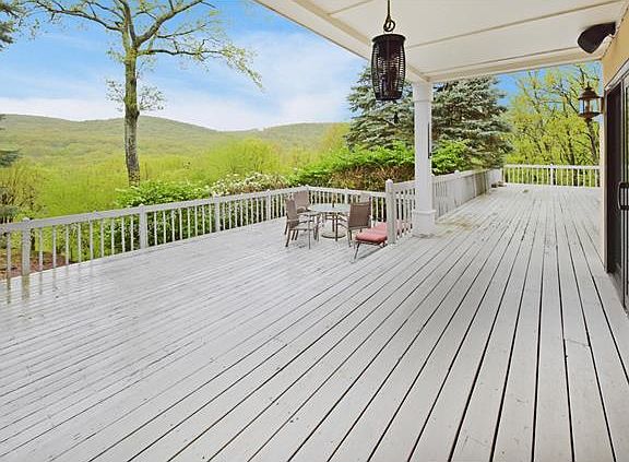 Vacation living year round!! Enjoy picturesque mountain views from the multi-tiered wrap around deck beautifully set on a private 5 acre property! This unique 5,500 sq/ft home features a grand marble entryway, a library with surround sound system, large kitchen with "Viking" oven, Sub-Zero Fridge/Freezer plenty of counter space and a large dinette. The custom painted, spacious living-room has vaulted ceilings and a 2 sided fireplace. This home has a 2 room guest suite with its own entrance, a full bath and kitchenette for total privacy; perfect for extended family or friends! An additional 3 large bedrooms upstairs; master-suite has large window with a magnificent view, a dressing area as well as a Jacuzzi! The tiled walk-out lower level features a sauna, full bath, media room and theater. This home is a must see! Buyers agent to verify taxes. There is an additional $1000 annual maintenance fee for the roads due for 2 more years.