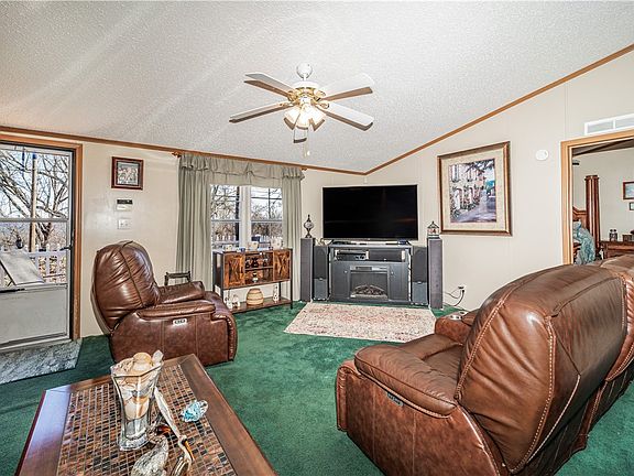 Impeccably maintained double wide featuring 3 spacious bedrooms, each with generous walk-in closets for ample storage. Enjoy the convenience of two full baths and relax on the covered back deck, offering serene wooded views and extended hillsides with evening sunsets. Access the welcoming front porch from the living room, perfect for enjoying morning coffee. Situated on a sizable .73-acre (mol) lot, this residence has been meticulously cared for by its current owners, who have occupied it for 1 1/2 years, following its prior use as a seasonal vacation retreat. Take advantage of its proximity to the plethora of amenities Holiday Island has to offer, including premier golf courses, a marina, Table Rock Lake access, scenic walking trails, and diverse shopping options. Plus, benefit from its convenient location just 7 miles from the historic charm of Eureka Springs, ensuring both relaxation and adventure are always within reach.