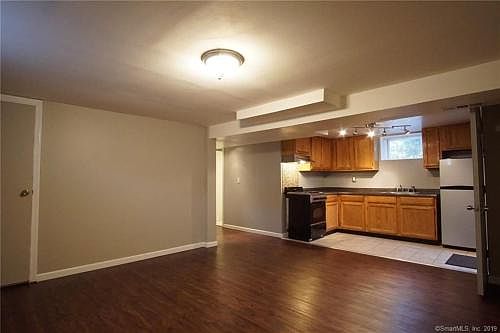 Roomy, light, lower-level apartment separate entrance. Beautiful newer kitchen stainless steel stove & fridge, counter top and tile flooring. Rich, hardwood-like floor in main area, brand new carpet in bedroom. Close to public transportation, I-95, Merritt Parkway and shopping. Good credit, references, application required. Landlords (who live upstairs reserve the right to meet prospective tenants. Electricity/heat/central air/water/trash/wireless internet included in non-negotiable additional $200/month (for net monthly cost of $1500. Washer/dryer privileges available. Cable may be available for additional charge. NO PETS, please don't ask (allergies. Agents: see Agent Remarks.