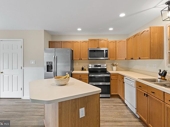 Well maintained Brick front townhouse in a great commuter location featuring 3 levels of finished living space consisting of 4 bedrooms and 3 and 1/2 baths. Main floor is delivers a large living room that flows into a huge kitchen that has plenty of table space, an island, LVP flooring and stainless steel Fridge,Microwave and stove. Off the kitchen you find a deck that has stairs down the fenced backyard. Venture upstairs you find 3 bedrooms and 2 full baths. Master Bedroom has its own private bath that has a soaking tub and separate shower. When you head down to the finished basement area you discover a large recreation room, a full bathroom and the 4th bedroom. Also in the basement you find the laundry room filled with a washer and dryer that convey. There are 2 assigned parking places and in sight is a playground within the subdivision. This one wont last long as it has a great price, lots of finished sq footage and awesome location for someone commuting to NOVA. Roof is about 5-6yrs old