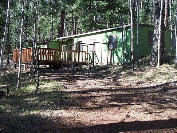 The property consists of a 1942 travel trailer with a wrap around structure. Also has a storage area and a separate building with a bathroom and shower. A 16x16 deck with a great stand of aspens and pines. Property is being sold ''as is''.