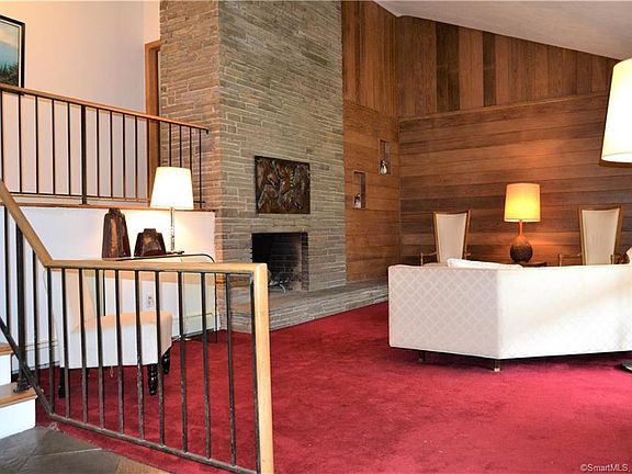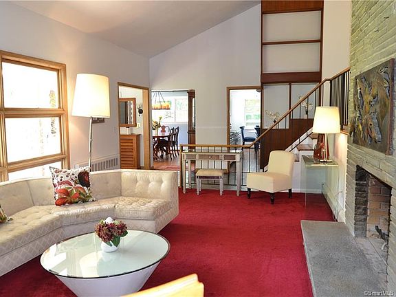 Reduced to Sell Five Bedroom Home on two acres in LOWER Wilton. Ideal cul de sac close to trains and shopping. You can feel the mid century modern vibe of this house when you walk in the front door From the street this looks like a one-level home, but there are three stories and lots of room inside with three bedrooms upstairs and two bedrooms down in this split level home. The walkout deck is just perfect for entertaining and overlooks the expansive two acres. The open main floor boasts a soaring living room centered with a stacked stone fireplace, newer kitchen, and large dining room surrounded by windows. From the front porch you can sit and enjoy the peace and quiet of the neighborhood. This quiet cul-de-sac is minutes to two train stations, downtown Wilton shopping, Route 7 and the Merritt Parkway. Needs Updates, but worth the investment Tons of storage in the unfinished basement and the attic space